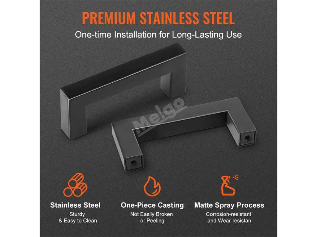 Sada skříňových úchytek VEVOR je vyrobena z odolné nerezové oceli, tento způsob montáže bez vrtání je vhodný pro začátečníky a zaručuje bezpečné uchycení. Je ideální pro kuchyňské skříňky, je to ideální volba pro renovaci vašeho nábytku.