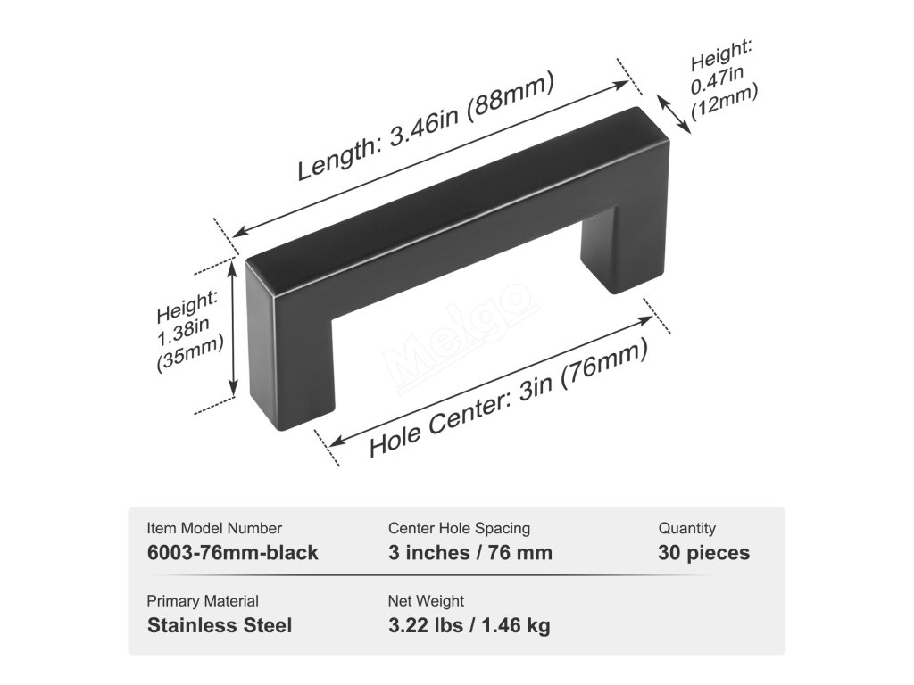 Úchytky do kuchyňských skříní 30 ks, 3in/76mm, nerez, matná černá