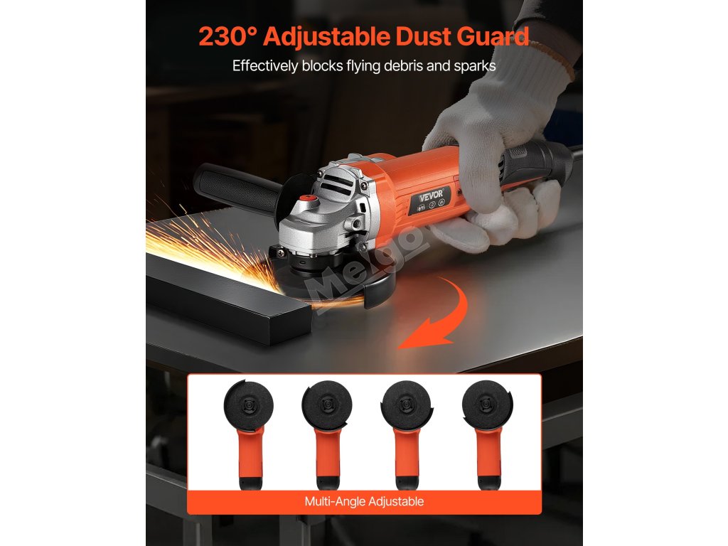 Promyšleně navržená úhlová bruska s nastavitelným ochranným krytem proti prachu v úhlu 230°, mimořádně dlouhým napájecím kabelem 6,56 ft (2 m) a dvoupolohovou boční rukojetí nabízí větší flexibilitu, bezpečnost a pohodlí při každém použití.