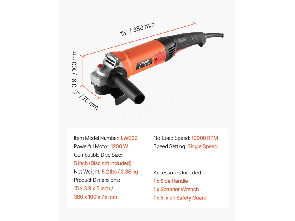 Tato úhlová bruska s průměrem 127 mm (5 palců) je poháněna motorem o výkonu 1200 W a pracuje při pevně stanovených vysokých otáčkách 10 000 ot/min, což zajišťuje vynikající řezný a brusný výkon pro širokou škálu úkolů. Ať už se jedná o domácí projekty pro kutily nebo profesionální práce, je to ideální volba. (Kotouč není součástí dodávky)