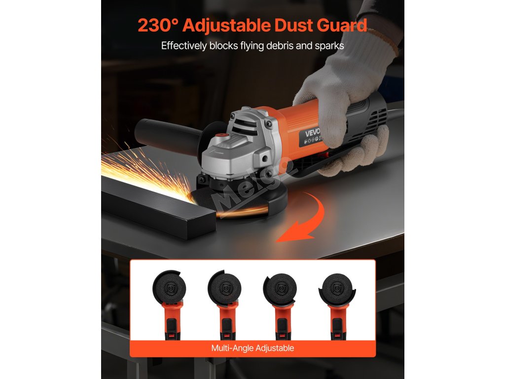 Promyšleně navržená úhlová bruska s nastavitelným ochranným krytem proti prachu v úhlu 230°, mimořádně dlouhým napájecím kabelem 6,56 ft (2 m) a dvoupolohovou boční rukojetí nabízí větší flexibilitu, bezpečnost a pohodlí při každém použití.