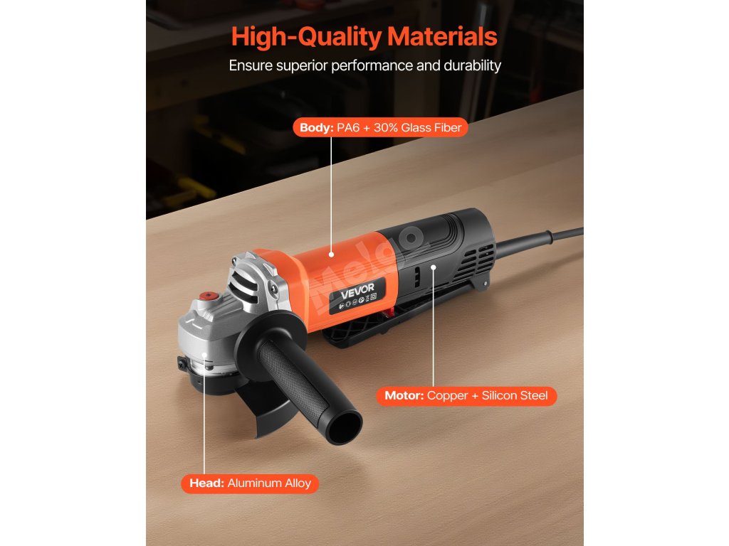 Tento elektrický mlýnek je vybaven 1000W motorem z čisté mědi a poskytuje stabilní a silný výkon. Díky vysokému výkonu 12 000 otáček za minutu zvládá řezání a broušení s rychlostí a přesností.