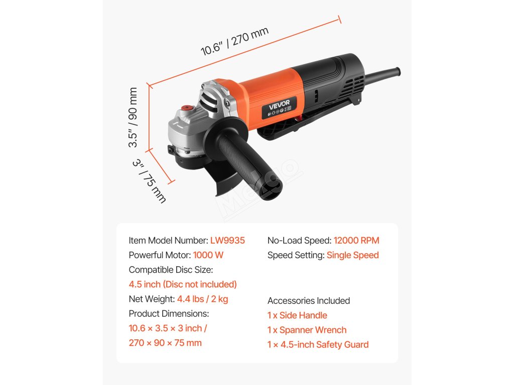 Tato 4,5palcová (114,3 mm) úhlová bruska je poháněna 1000W motorem a pracuje při pevných vysokých otáčkách 12 000 ot/min, což zajišťuje vynikající řezný a brusný výkon pro širokou škálu úkolů. Ať už se jedná o domácí projekty pro kutily nebo profesionální práce, je to ideální volba. (Kotouč není součástí dodávky)