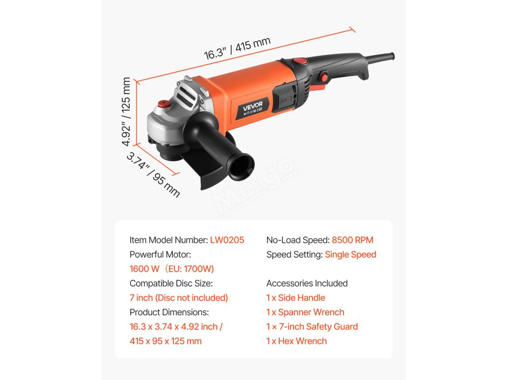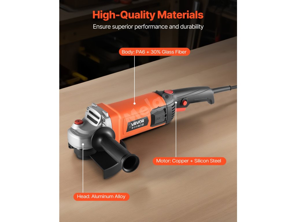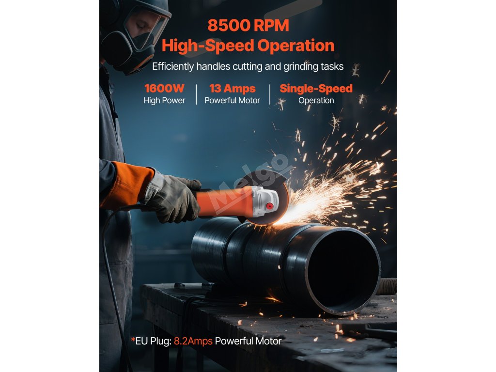 Tento elektrický mlýnek je vybaven 1700W motorem z čisté mědi a poskytuje stabilní a silný výkon. Díky vysokému výkonu 8500 otáček za minutu zvládá řezání a broušení s rychlostí a přesností.