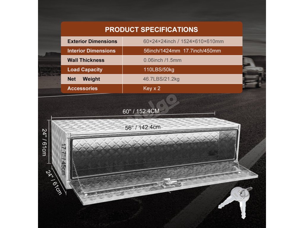 Kombinuje vysokokvalitnú konštrukciu s prijateľnou cenou, vďaka čomu predstavuje nákladovo efektívne riešenie na uskladnenie. Odolnosť a funkčnosť boxu z neho robia vynikajúcu investíciu pre každého, kto potrebuje bezpečné skladovanie. Aj keď má VEVOR Underbody Truck Box neuveriteľne dostupnú cenu, kvalita nie je ohrozená. Získate spoľahlivý výkon a dlhú životnosť a zároveň si zachováte výhodnosť nákupu. Vďaka tomu je ideálny pre tých, ktorí hľadajú spoľahlivú a zároveň cenovo výhodnú možnosť skladovania.