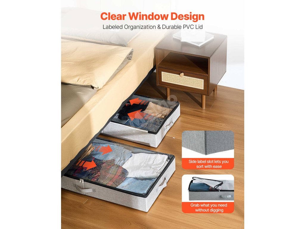 Tento úložný prostor pod postelí se hodí pod postele, pohovky, stoly a nábytek a nabízí praktické řešení pro uspořádání oblečení, bot a hraček.
