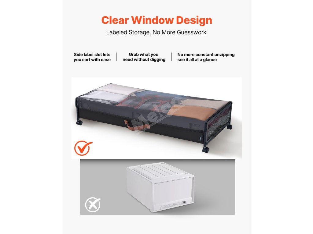 Tento úložný priestor pod posteľou sa hodí pod postele, pohovky, stoly a nábytok a ponúka praktické riešenie na usporiadanie oblečenia, obuvi a hračiek.