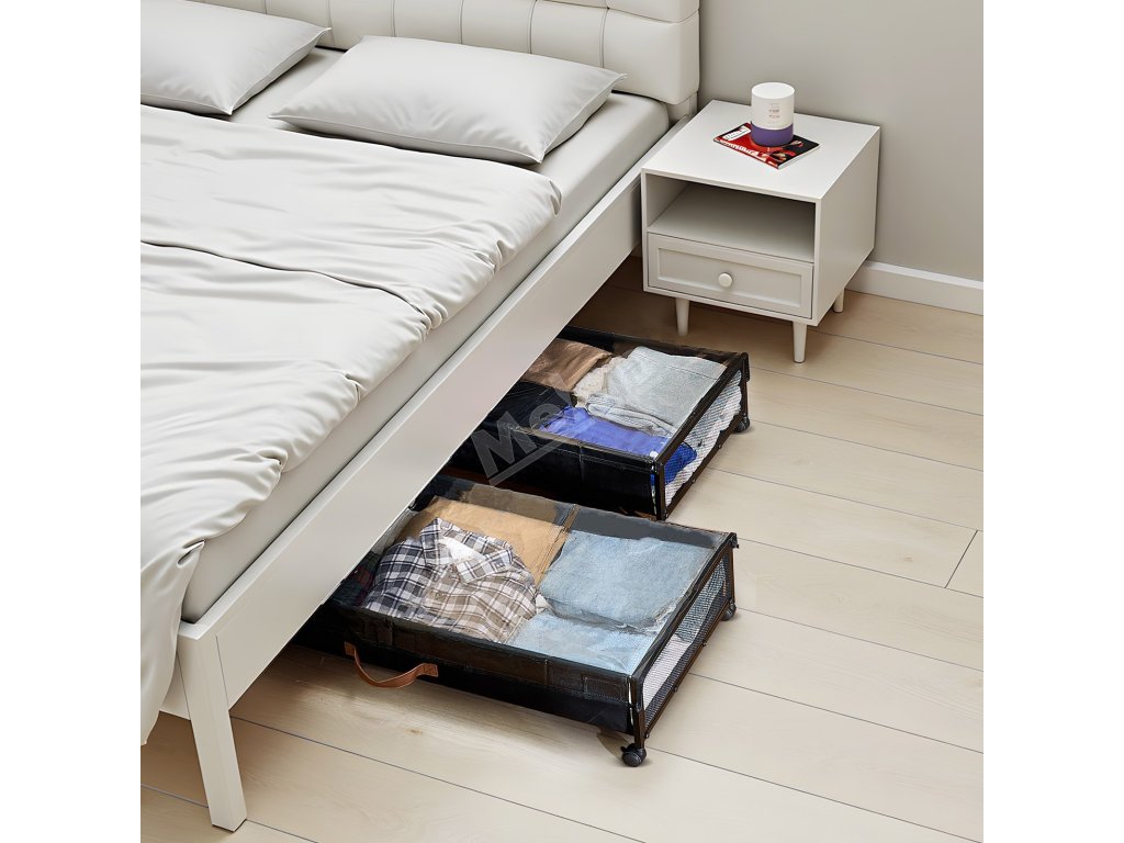 Tento rolovací úložný priestor pod posteľ je vybavený bočnou rukoväťou a štyrmi kolieskami s plynulým otáčaním o 360° (niektoré s aretáciou), vďaka čomu ľahko kĺže po rôznych povrchoch a umožňuje bezpečné umiestnenie.
