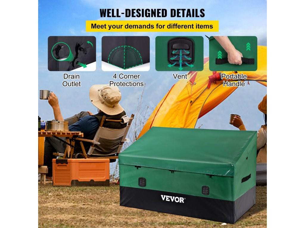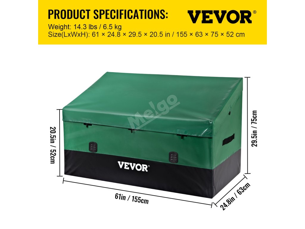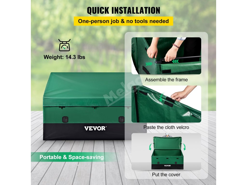 Hmotnost: 14,3 lbs. Tento přenosný a lehký úložný box lze snadno přenášet kamkoli. Hodí se také na mnoho míst, jako jsou okraje bazénů, dvory, zahrady a garáže.