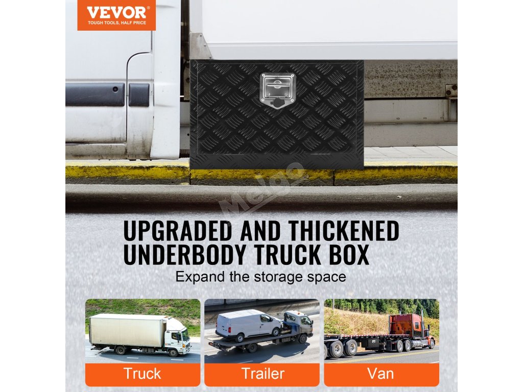 Jsou vaše věci uspořádané a snadno dostupné? Skříňka na nářadí VEVOR pod korbu rozšíří úložný prostor vašeho nákladního automobilu, přívěsu nebo jiného velkého vozidla. Do této skříně pro nákladní automobily můžete uložit všechny potřebné věci, od nářadí pro údržbu až po kempinkové vybavení, a mít tak vše přehledně uspořádané.