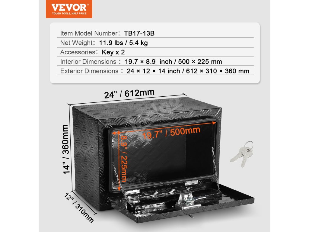 Úložný box pod vůz pro pickup 24"×12"×14" hliníkový s zámkem