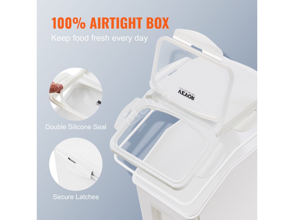 Tento zásobník na rýži obsahuje těsnicí spony a 2 silikonové těsnicí kroužky, které zajišťují, že potraviny zůstanou suché.