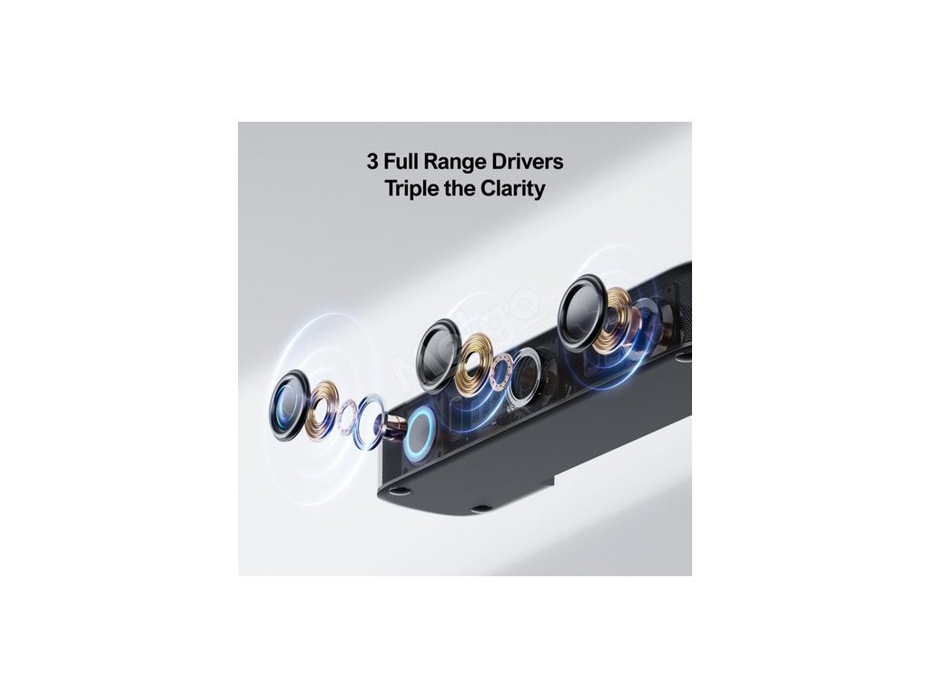 Soundbar Ultimea pro chytrý televizor vybavený 3 hlavními zvukovými kanály zaručuje křišťálově čisté dialogy. Díky 2 prostorovým reproduktorům a subwooferu poskytuje bohatý, pohlcující prostorový zvuk a hluboké, silné basy. Poznámka: Doporučeno pro prostory o rozloze ≤ 215 stop²/20m².