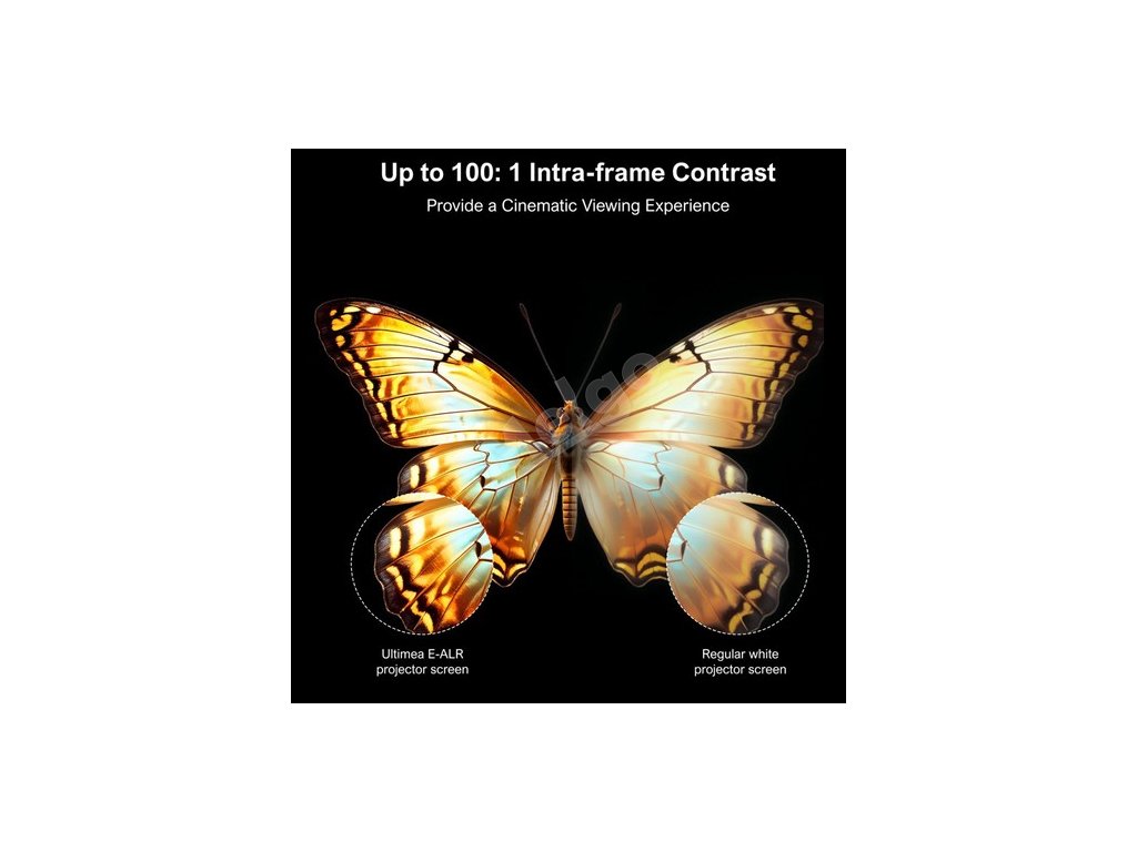 Díky technologii E-ALR společnosti Ultimea dokáže Photon 100 odmítat nebo filtrovat nežádoucí zdroje světla, takže účinně blokuje jak světlo nad hlavou, tak denní světlo z okolí. I při otevřených závěsech nebo rozsvícených světlech můžete získat obraz na velké obrazovce s vysokým kontrastem a živou sytostí barev. V dobře osvětlené místnosti udrží vaše oči v pohodlí i po delším sledování.