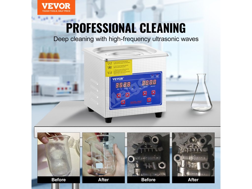 Vysoce kvalitní ultrazvuková čistička poskytuje výkonné čištění s prostorným designem. Bez námahy si poradí s odolnými nečistotami a zajistí trvalou čistotu během jediného cyklu bez složitého nastavování. Ať už jste profesionál nebo domácí uživatel, nabízí profesionální a pohodlné čištění.