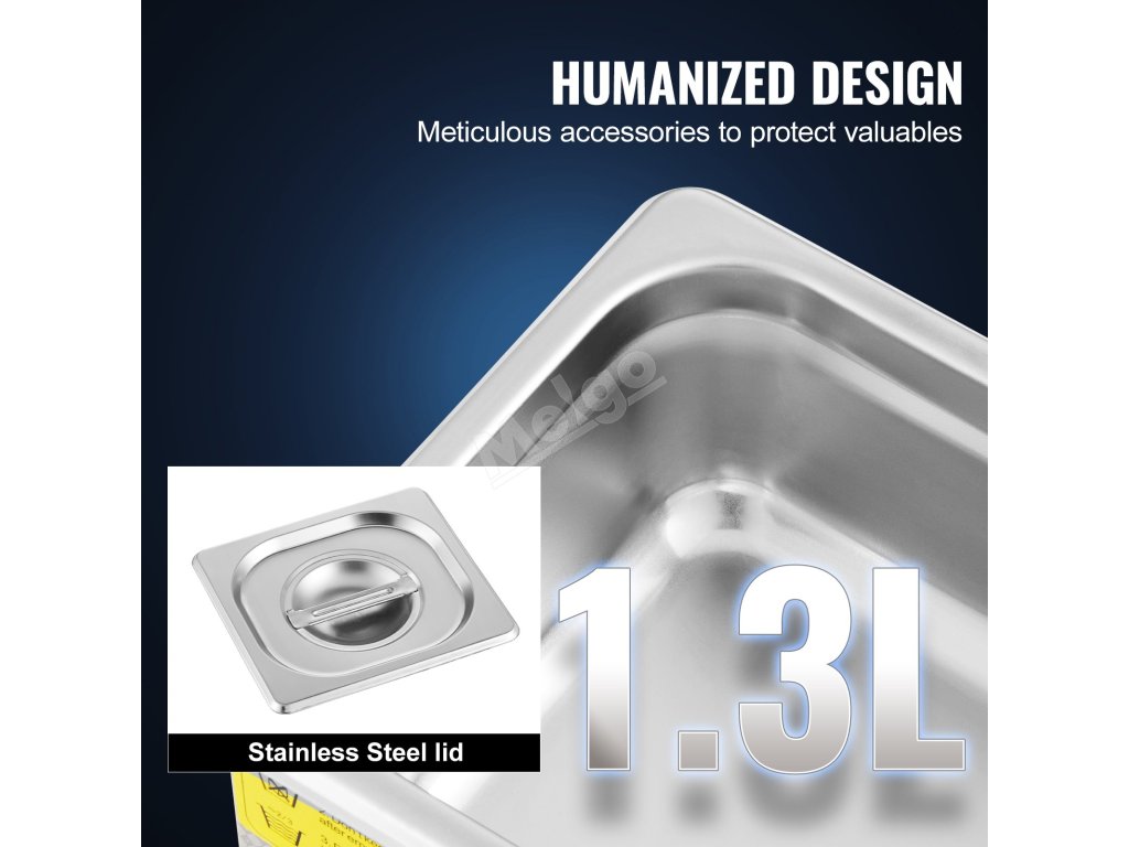 Vysoce kvalitní ultrazvuková čistička poskytuje výkonné čištění s prostorným designem. Bez námahy si poradí s odolnými nečistotami a zajistí trvalou čistotu během jediného cyklu bez složitého nastavování. Ať už jste profesionál, nebo domácí uživatel, nabízí čištění na profesionální úrovni a pohodlné čištění.