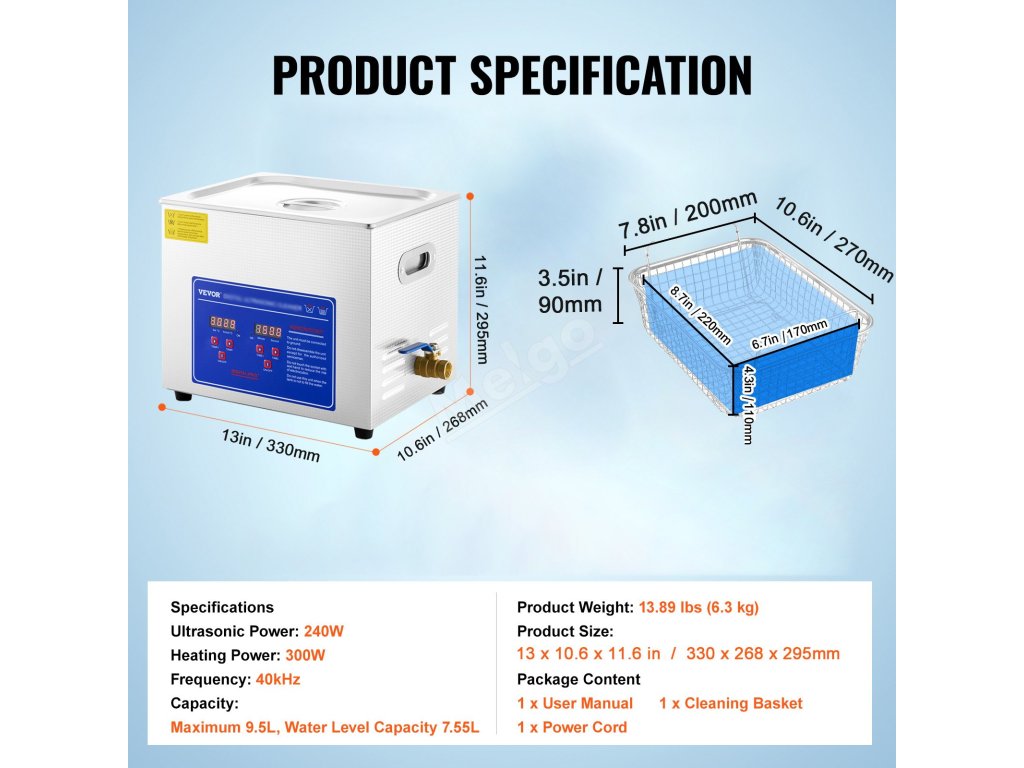 Vysoce kvalitní ultrazvuková čistička poskytuje výkonné čištění s prostorným designem. Bez námahy si poradí s odolnými nečistotami a zajistí trvalou čistotu během jediného cyklu bez složitého nastavování. Ať už jste profesionál, nebo domácí uživatel, nabízí čištění na profesionální úrovni a pohodlné čištění.