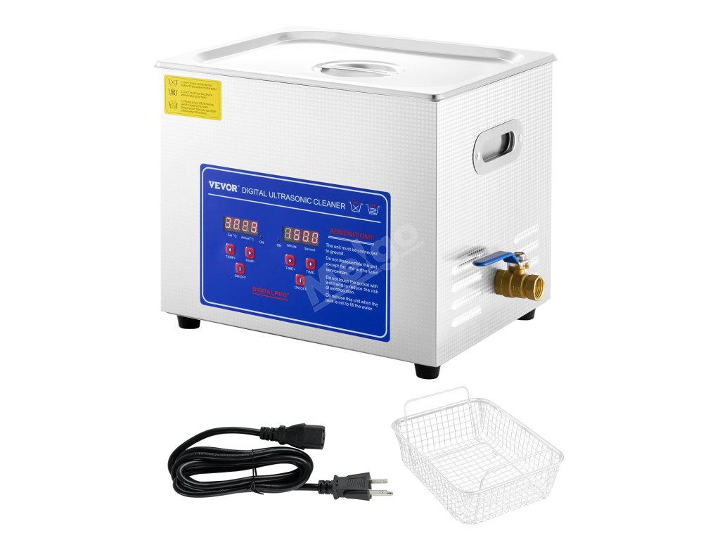 Ultrazvuková čistička 10 L, 40 kHz, časovač a ohřívač, nerez