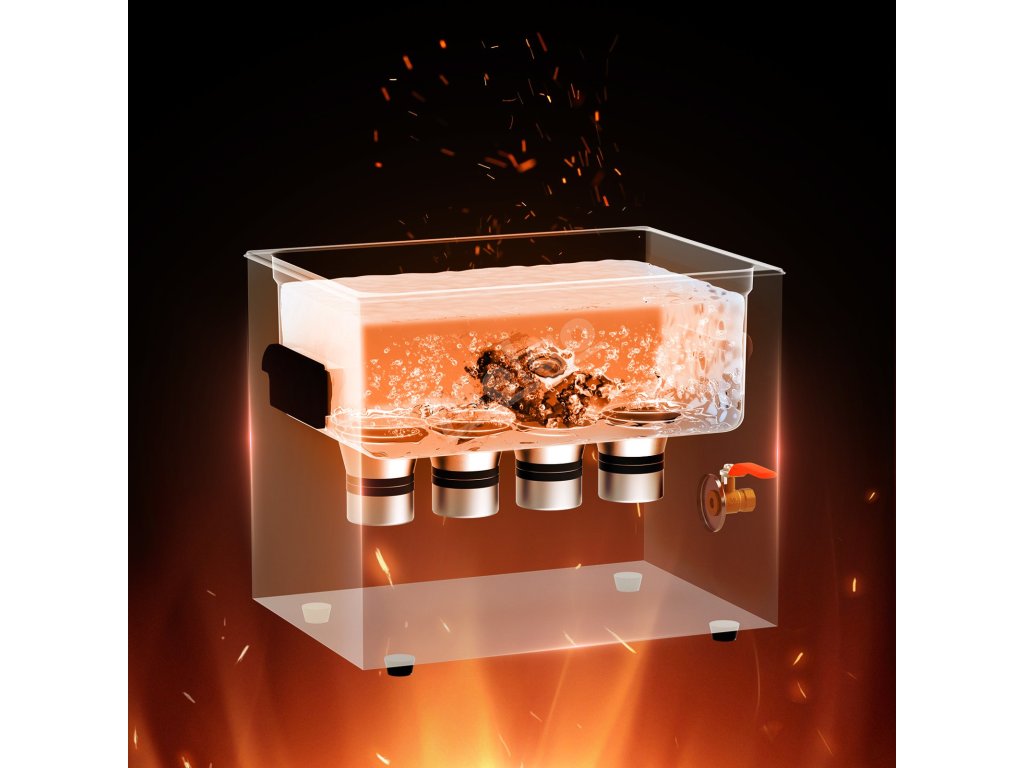 Ultrazvukové vlny o frekvenci 40 kHz vytvářejí miliony malých bublinek, které pronikají do povrchů a štěrbin a důkladně odstraňují nečistoty, aniž by poškodily vzhled nebo kvalitu předmětu.