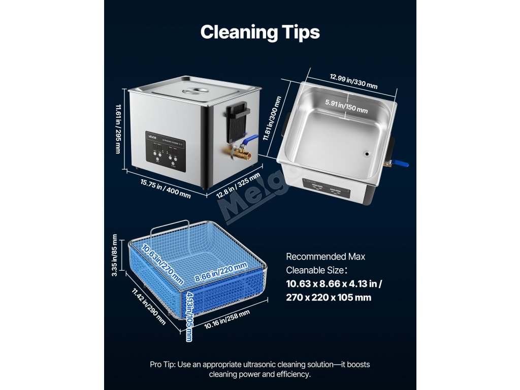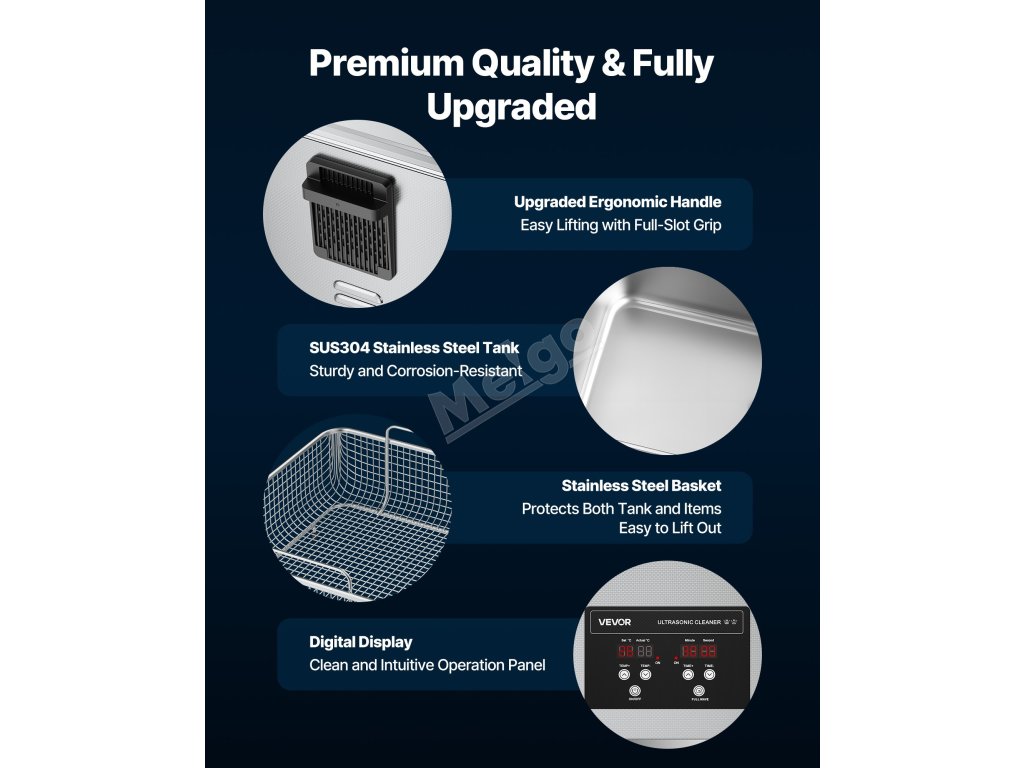Ultrazvuková čistička 15 l, 40 kHz, 240 W, nerez, s košem a displejem