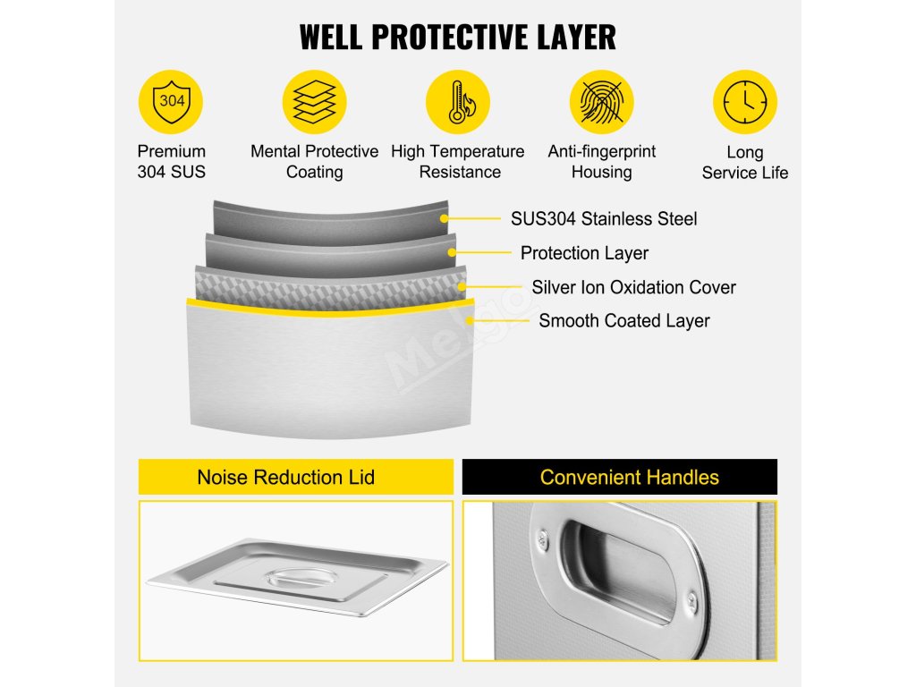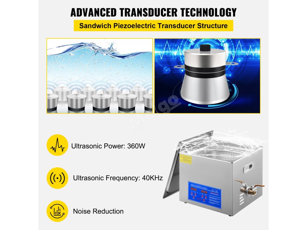 Tato ultrazvuková čistička dílů je vyrobena z nerezové oceli 304 s víkem tlumícím hluk a vestavěnými rukojeťmi na obou stranách, které jsou navrženy pro trvanlivé použití a snadné čištění.