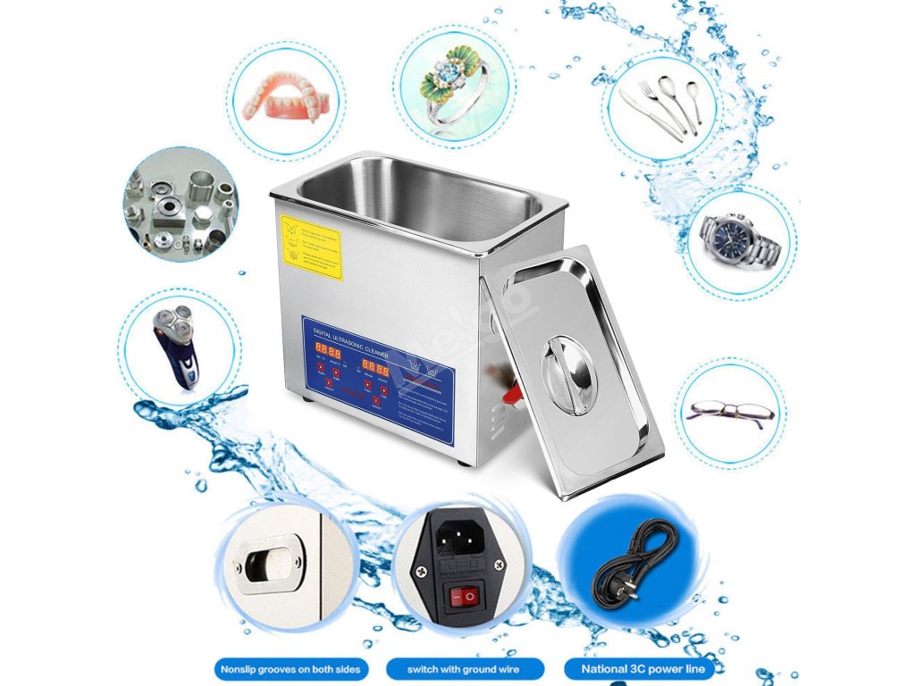 Náš ultrazvukový čisticí stroj je ideální pro domácí nebo profesionální použití a je široce používán k čištění šperků, brýlí, hodinek, kovových nástrojů, zubního vybavení, laboratorního vybavení atd.