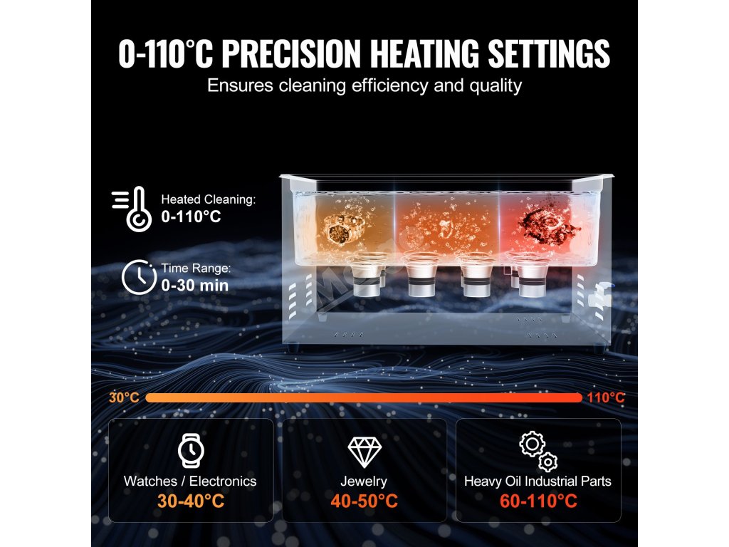 Ultrazvuková čistička VEVOR: výkon a přesnost pro čištění bez námahy!