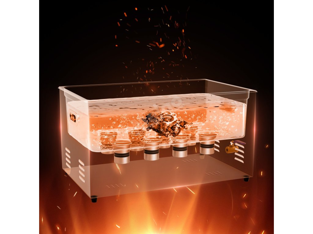 Ultrazvukové vlny o frekvenci 40 kHz vytvářejí miliony malých bublinek, které pronikají do povrchů a štěrbin a důkladně odstraňují nečistoty, aniž by poškodily vzhled nebo kvalitu předmětu.