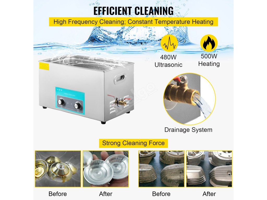 Skutečná pracovní doba čištění 480 W (nastavitelná na 0-30 minut); může také ohřívat kapalinu v rozmezí 20-80 ℃ (nastavitelné). Mikročipem řízený stroj se 2 mechanickými knoflíky pro nastavení funkcí. po dokončení získáte zcela nové cennosti.