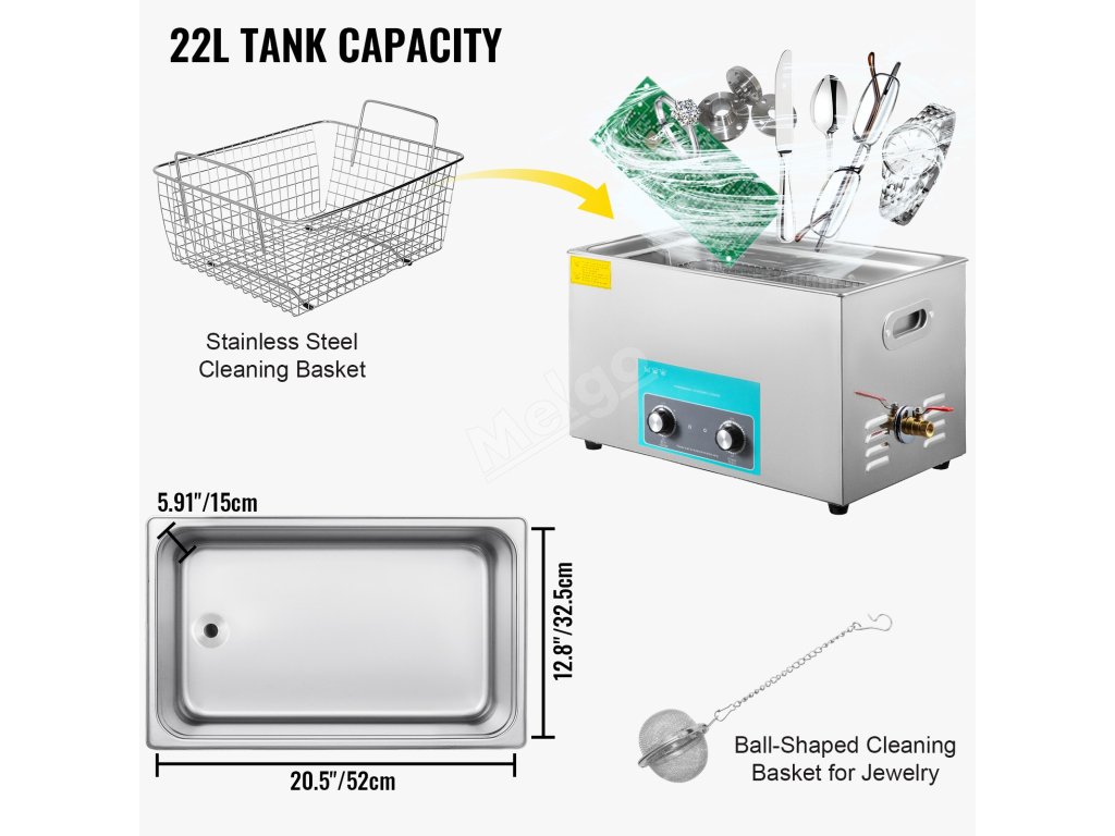 Ultrazvuková čistička 22L, nerez 304, s ohřívačem a časovačem