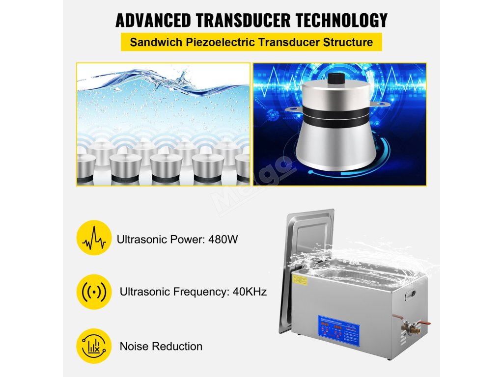 Tato ultrazvuková čistička dílů je vyrobena z nerezové oceli 304 s víkem tlumícím hluk a vestavěnými rukojeťmi na obou stranách, které jsou navrženy pro trvanlivé použití a snadné čištění.