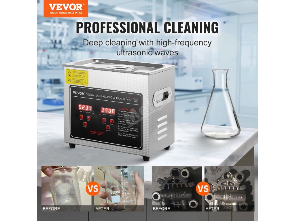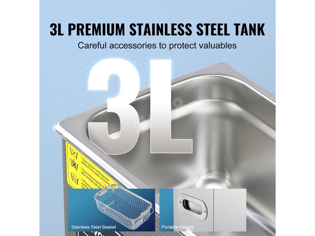 Ultrazvuková čistička 3 l nerez s digitálním časovačem a ohřívačem