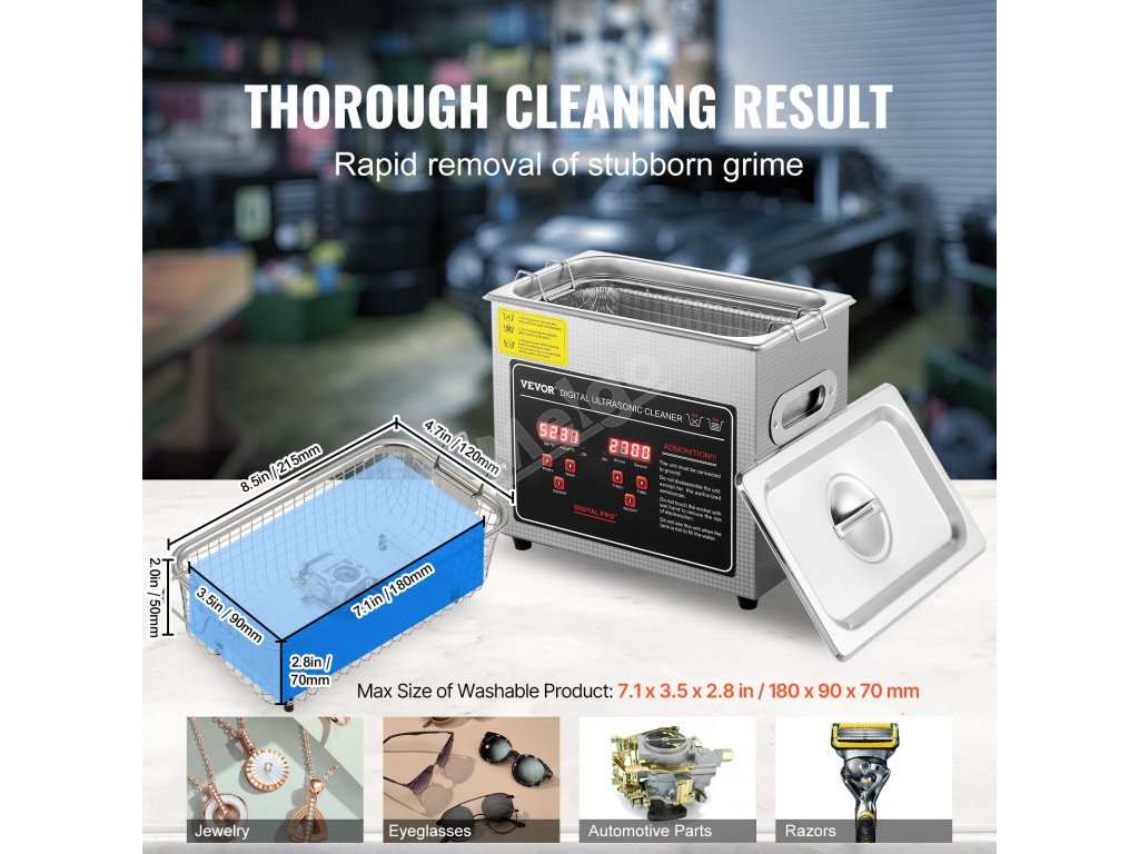Vysoce kvalitní ultrazvuková čistička poskytuje výkonné čištění s prostorným designem. Bez námahy si poradí s odolnými nečistotami a zajistí trvalou čistotu během jediného cyklu bez složitého nastavování. Ať už jste profesionál nebo domácí uživatel, nabízí profesionální a pohodlné čištění.