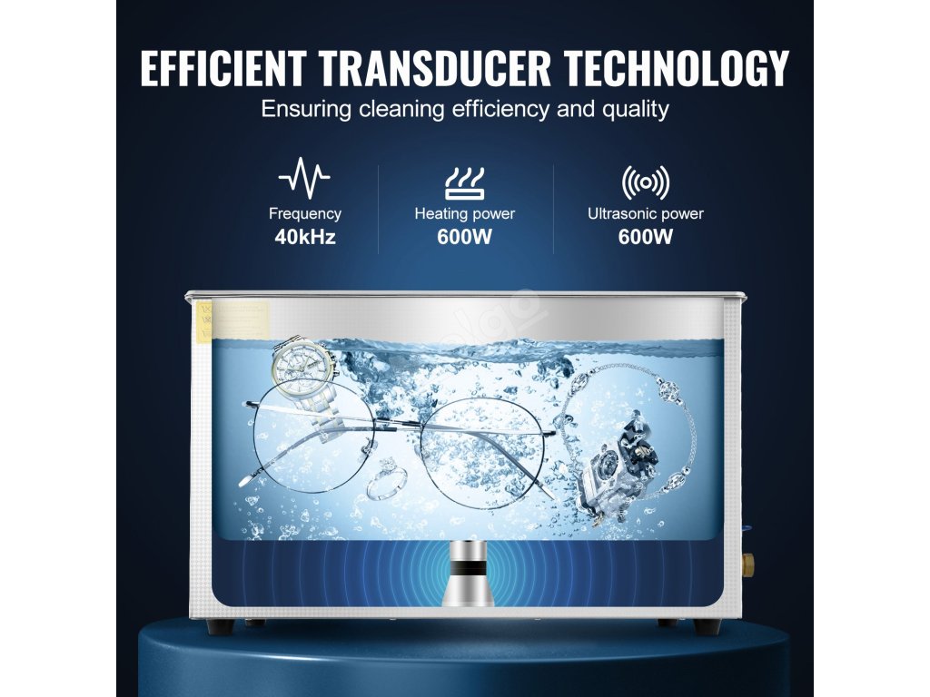 Sonický čistič využívá pokročilou technologii snímačů a generuje 40kHz ultrazvukové vlny, které vytvářejí miliony malých bublinek, účinně pronikají na povrchy a do štěrbin a důkladně čistí nečistoty, aniž by poškodily vzhled nebo kvalitu předmětů.