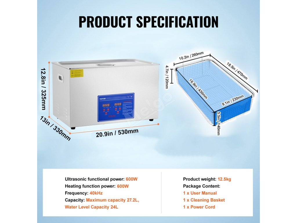 Vysoce kvalitní ultrazvuková čistička poskytuje výkonné čištění s prostorným designem. Bez námahy si poradí s odolnými nečistotami a zajistí trvalou čistotu během jediného cyklu bez složitého nastavování. Ať už jste profesionál, nebo domácí uživatel, nabízí čištění na profesionální úrovni a pohodlné čištění.