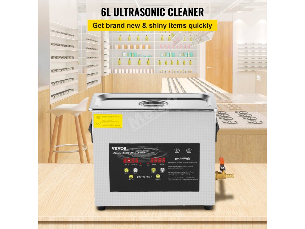 Ultrazvuková čistička 6 l, 180 W ultrazvuk, 400 W ohřívač s časovačem