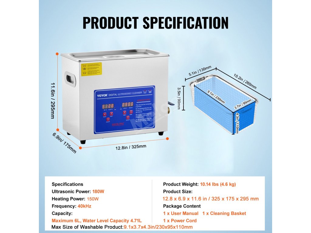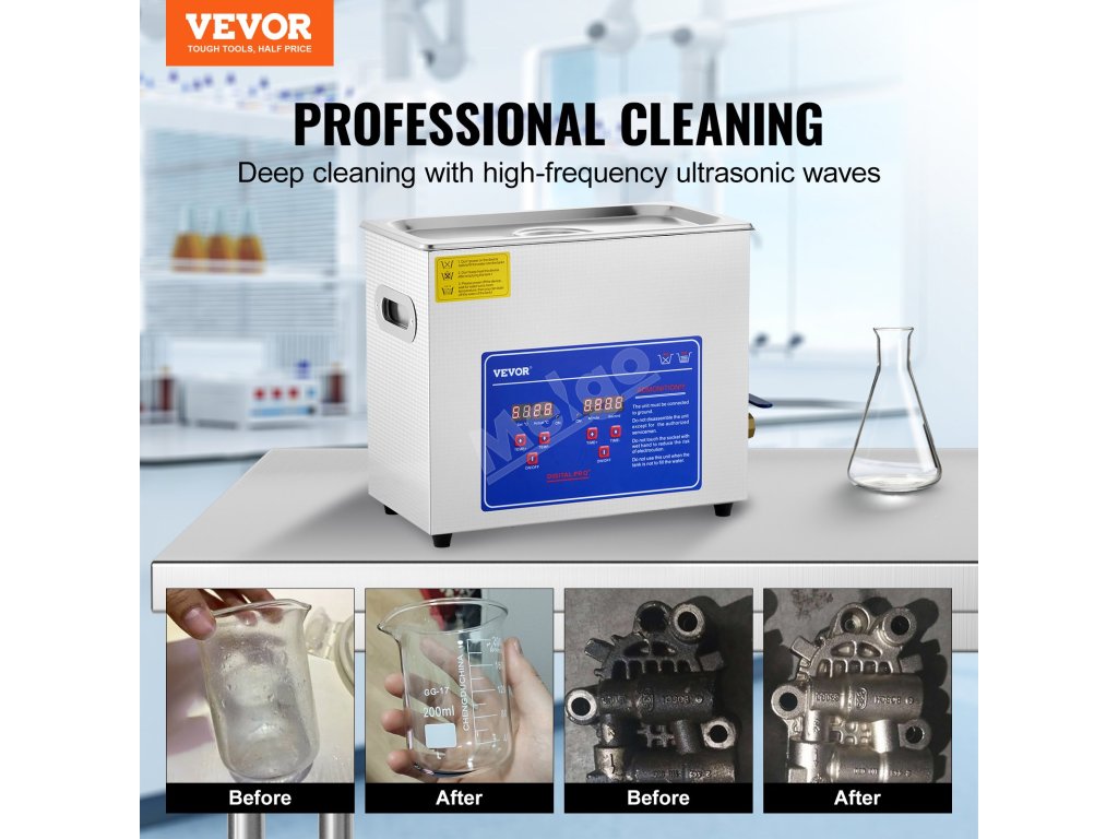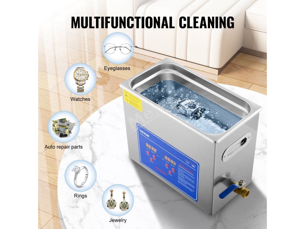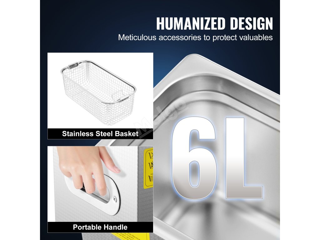 Ultrazvuková čistička 6 L 40 khz, nerez, digitální časovač, ohřívač