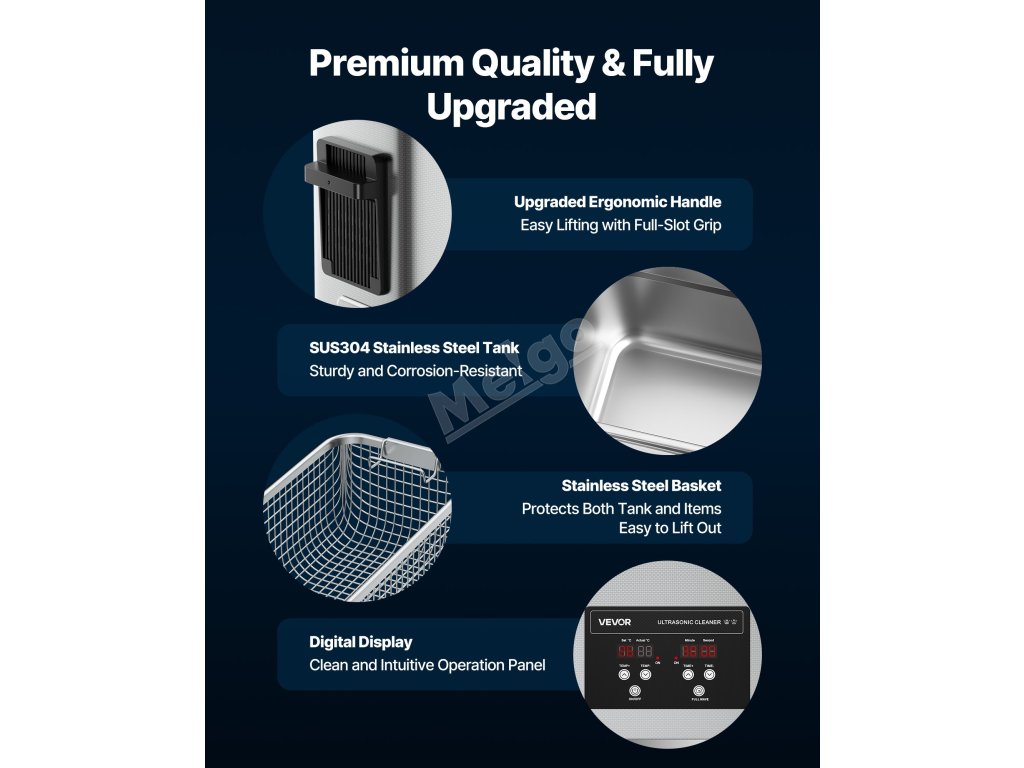 Ultrazvuková čistička 6L, 120W, 40kHz, nerezová, digitální displej