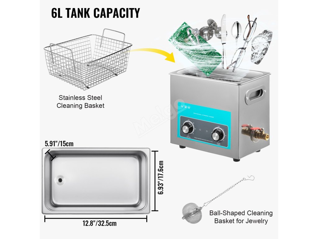 Ultrazvukový čistič 6,5 l s ohřívačem a časovačem, otočné ovládání