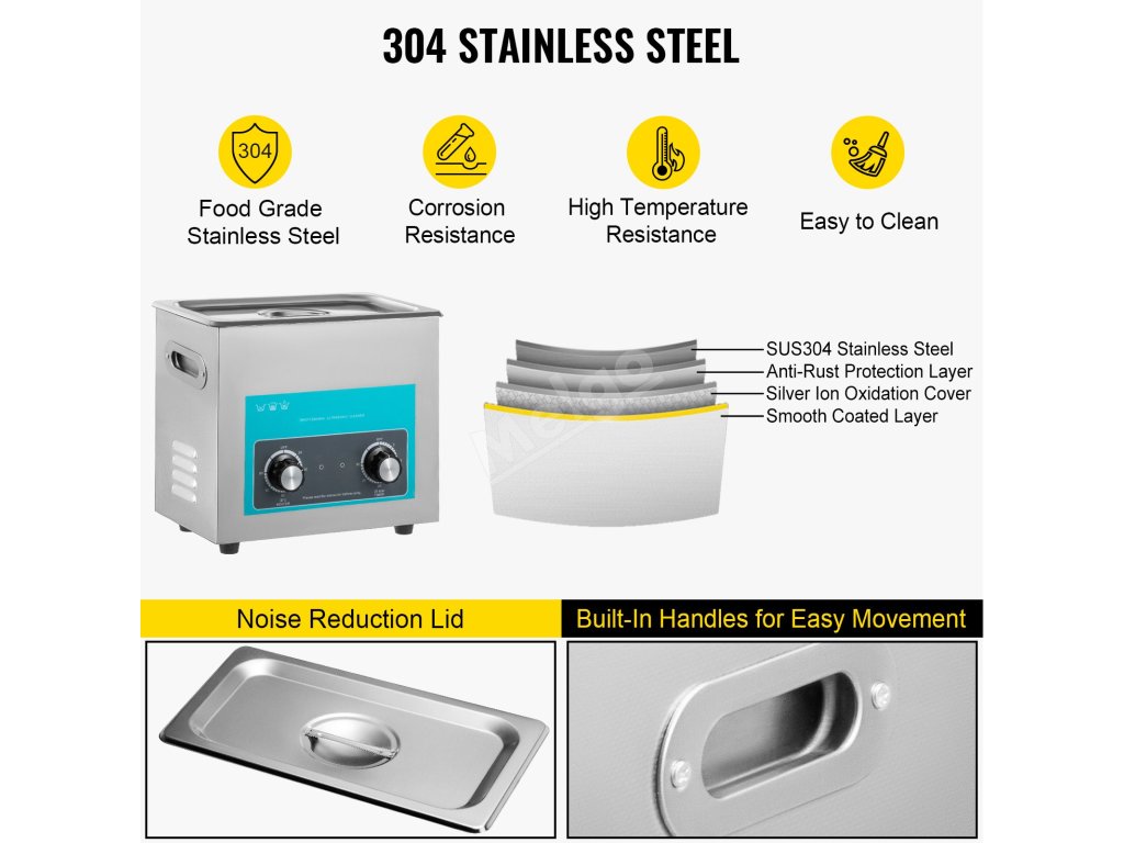 Skutečná pracovní doba čištění 180 W (nastavitelná na 0-30 minut); může také ohřívat kapalinu v rozmezí 20-80 ℃ (nastavitelné). Mikročipem řízený stroj se 2 mechanickými knoflíky pro nastavení funkcí. po dokončení získáte zcela nové cennosti.