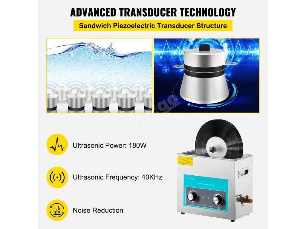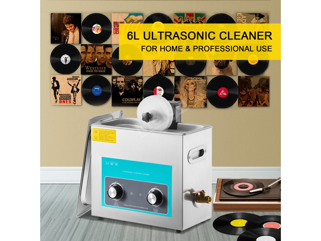 Ultrazvukový čistič vinylových desek 6l 40 kHz 8 plat nerez ohřívač