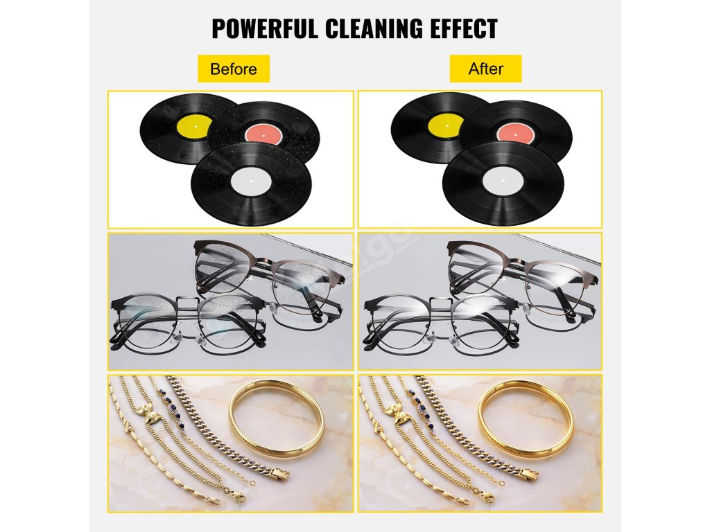 Naše ultrazvuková čistička je ideální pro domácí i profesionální použití, široce se používá k čištění vinylových desek, šperků, brýlí, hodinek, kovových nástrojů, laboratorního nádobí atd.