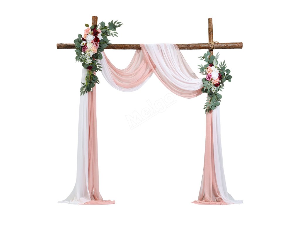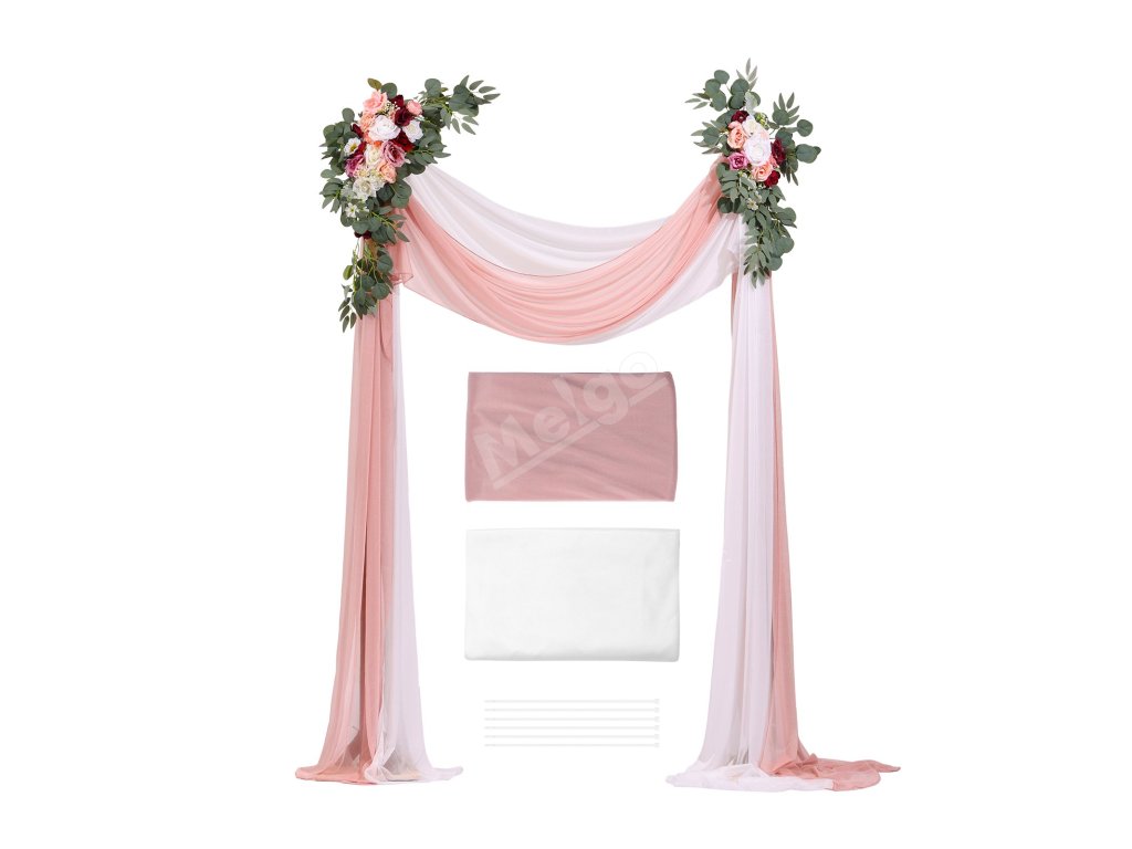Umělá květinová výzdoba na oblouk, růžová, 2 aranžmá, 2 závoje