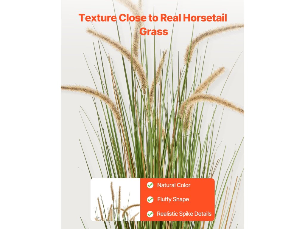 Umělá přesličková tráva má realistický vzhled a realistickou strukturu. Naše umělá tráva vytváří přirozenou atmosféru blízkou skutečným rostlinám. Snadno se udržuje a je vizuálně přitažlivá, dodá vašemu prostoru trvalou zeleň.