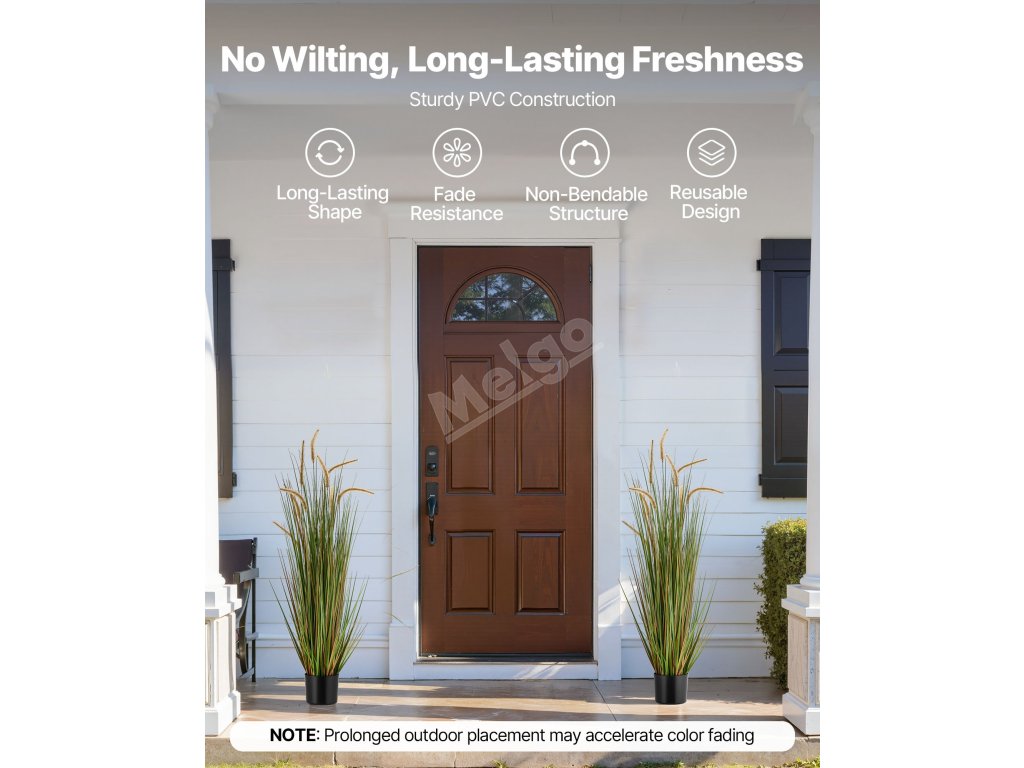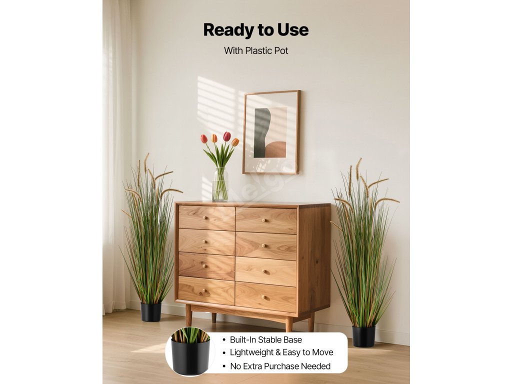 Tato realistická travní rostlina je vhodná pro vnitřní i venkovní použití. Ať už ji umístíte na verandu, do obývacího pokoje, na zahradu nebo do hotelové haly, okamžitě zlepší zeleň a atmosféru každého prostoru.