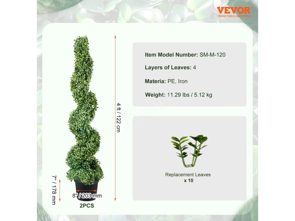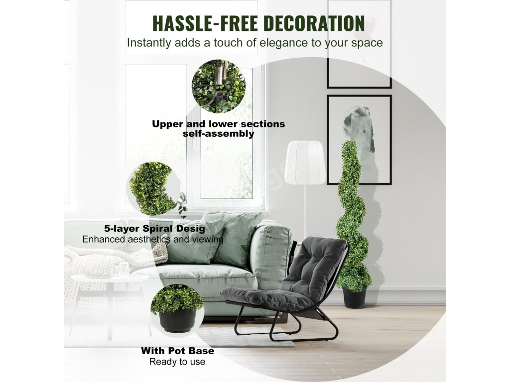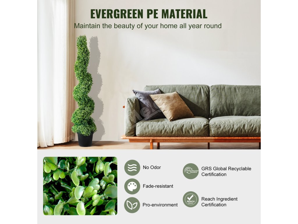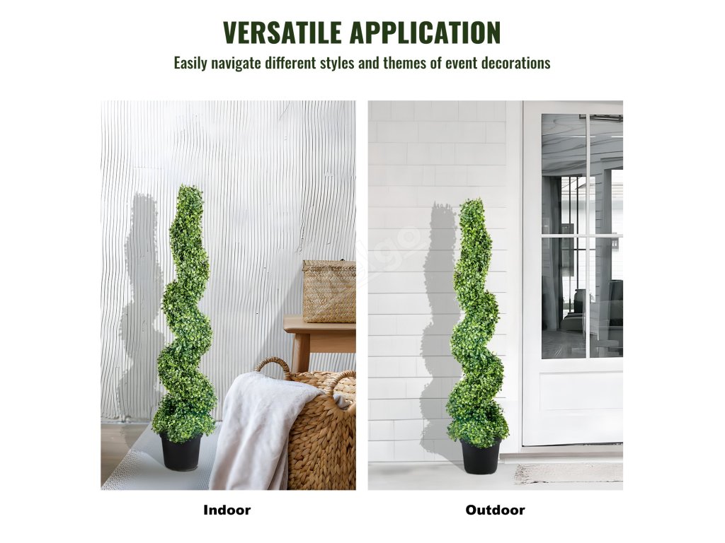 Umělé rostlinné topiary jsou vyrobeny precizně a s důrazem na detail a vyznačují se svěží zelení a výraznými tvary. Robustní konstrukce jim umožňuje odolávat UV záření a různým povětrnostním podmínkám, což zaručuje dlouhotrvající krásu.