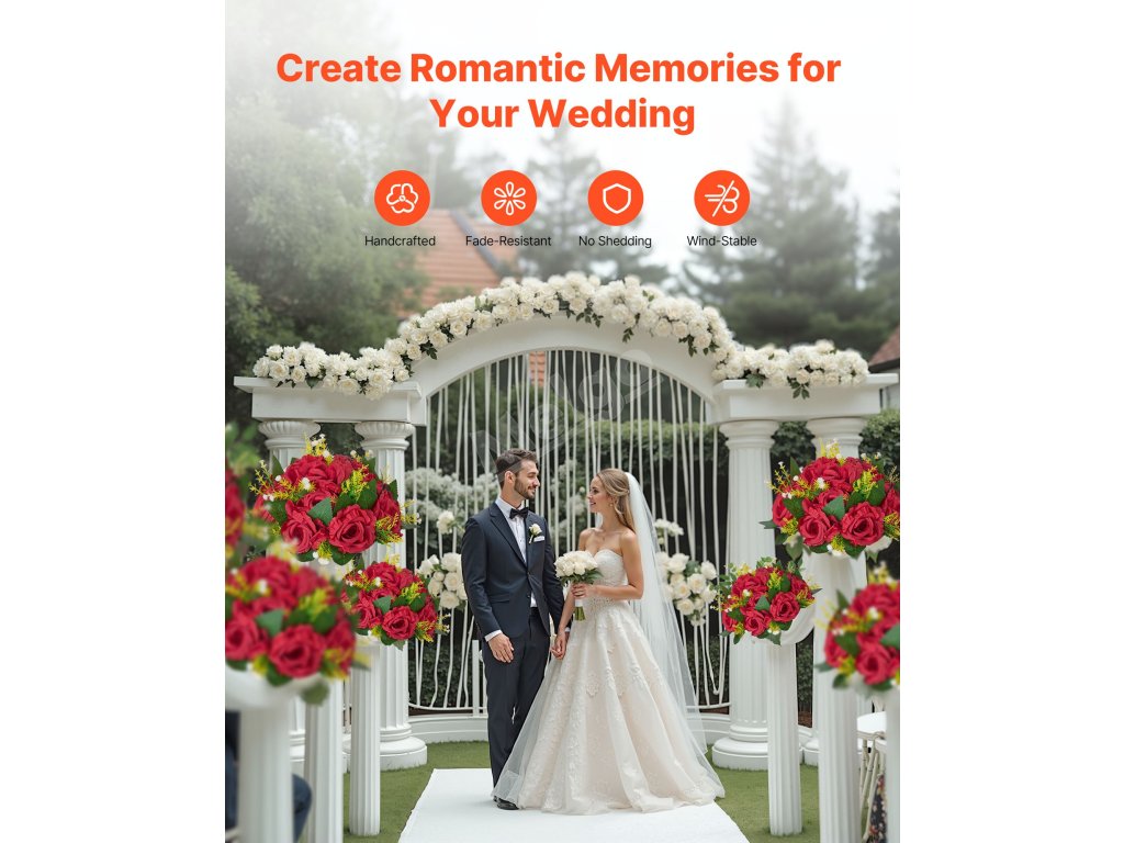 Umělé květinové koule 10 ks, 240 mm, červené růže, na svatební stůl