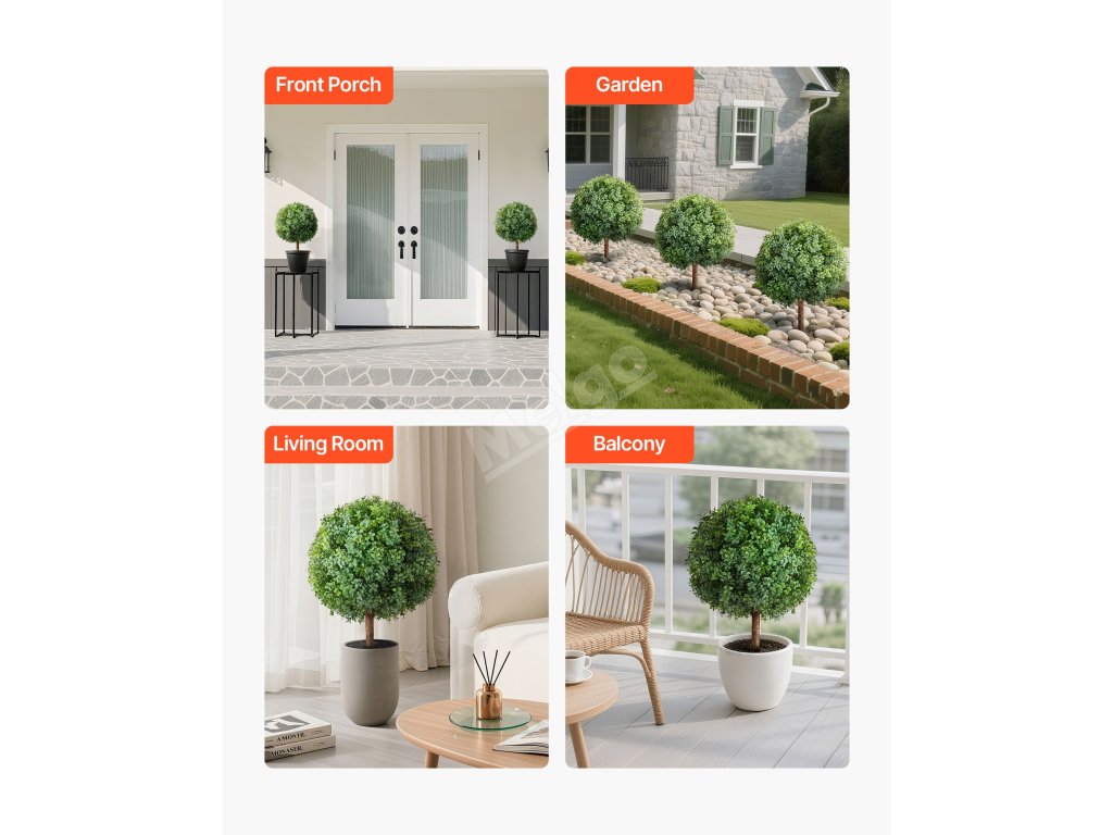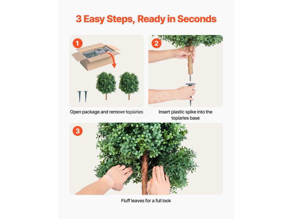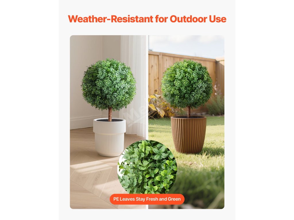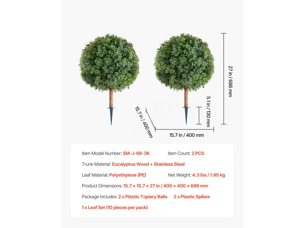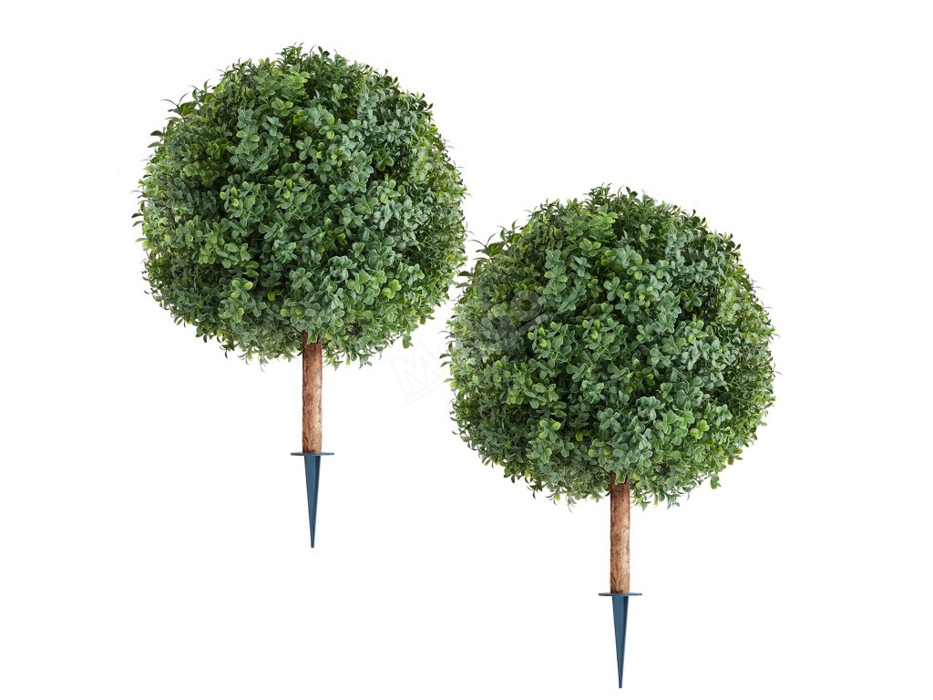 Umělé tvarované buxusové stromky, 2 ks, výška 686 mm, s kolíkem