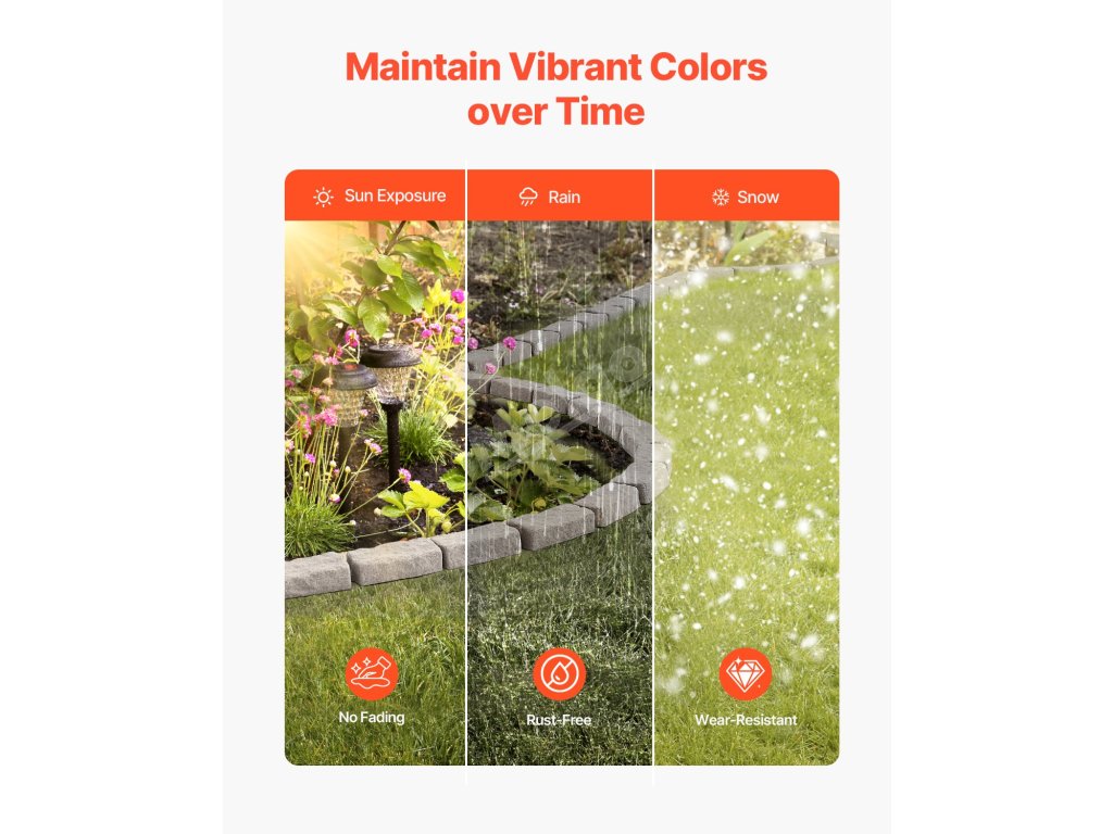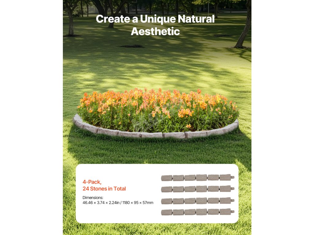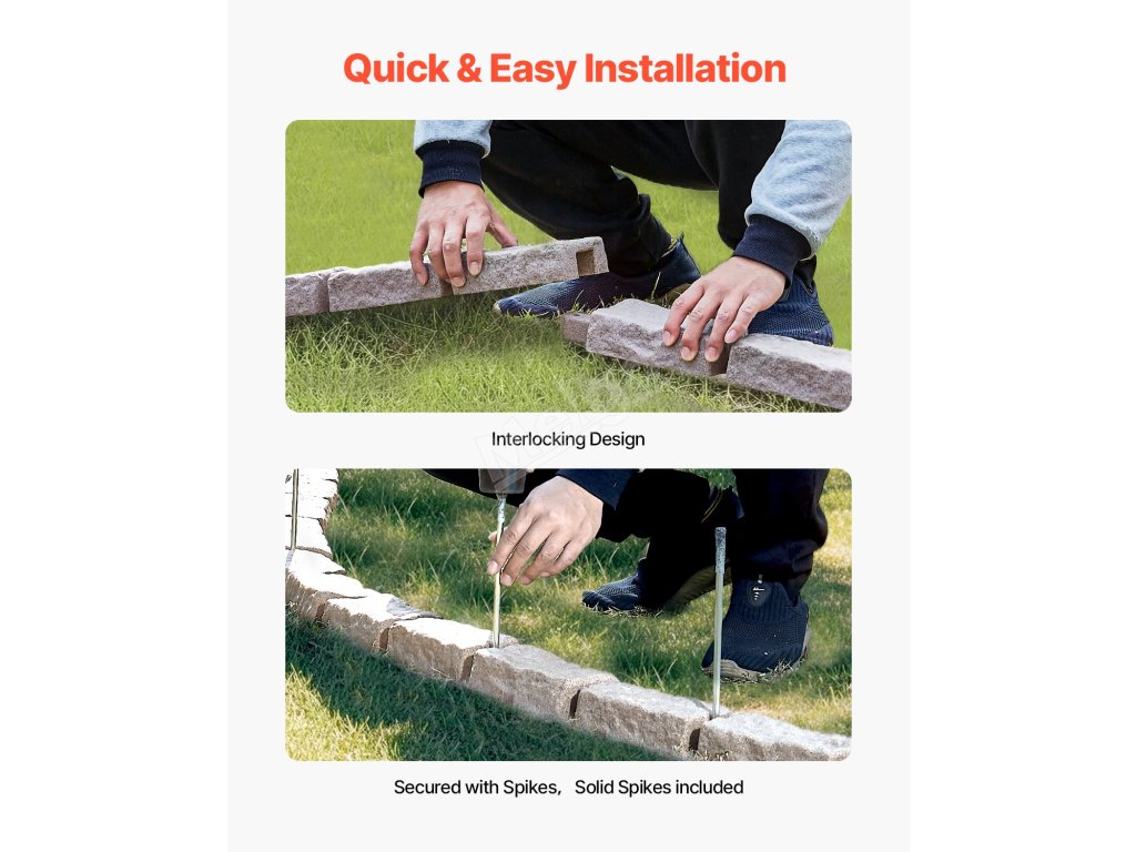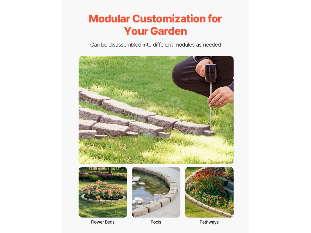 Tento kamenný krajinný lem má realistickou strukturu kamene, která bez námahy zvýší vizuální přitažlivost vaší zahrady, bazénu a chodníků. Modulární konstrukce umožňuje rychlou instalaci. Tato obruba trávníku je vyrobena z vysoce kvalitního PE, je odolná proti vyblednutí, rezavá, lehká a má dlouhou životnost.