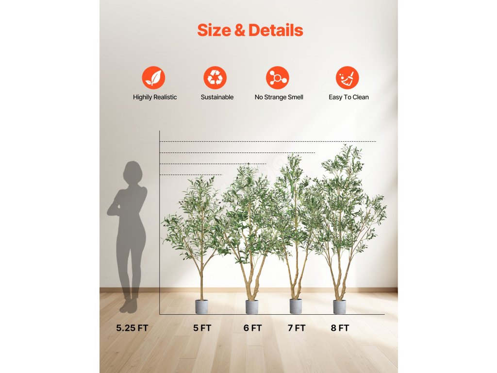 Tento umělý stromek má živé, realistické zelené listy, které z něj dělají skvělý doplněk pro váš domov, kancelář nebo výzdobu terasy. Okamžitě vnese do vašeho prostoru nádech přírody a svěžesti!